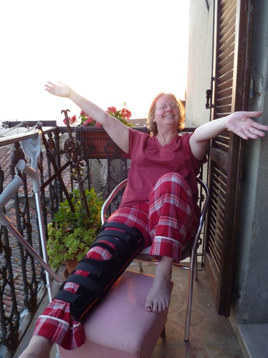 So, even though I am a klutz, God worked everything out. I was spared hitting my head on the corner of the pillar or landing head first and being paralyzed. When I think of those alternatives, a hurt knee isn’t so bad. So all in all, God is good and I will be fine. Tuscany will still be there in a few years.
